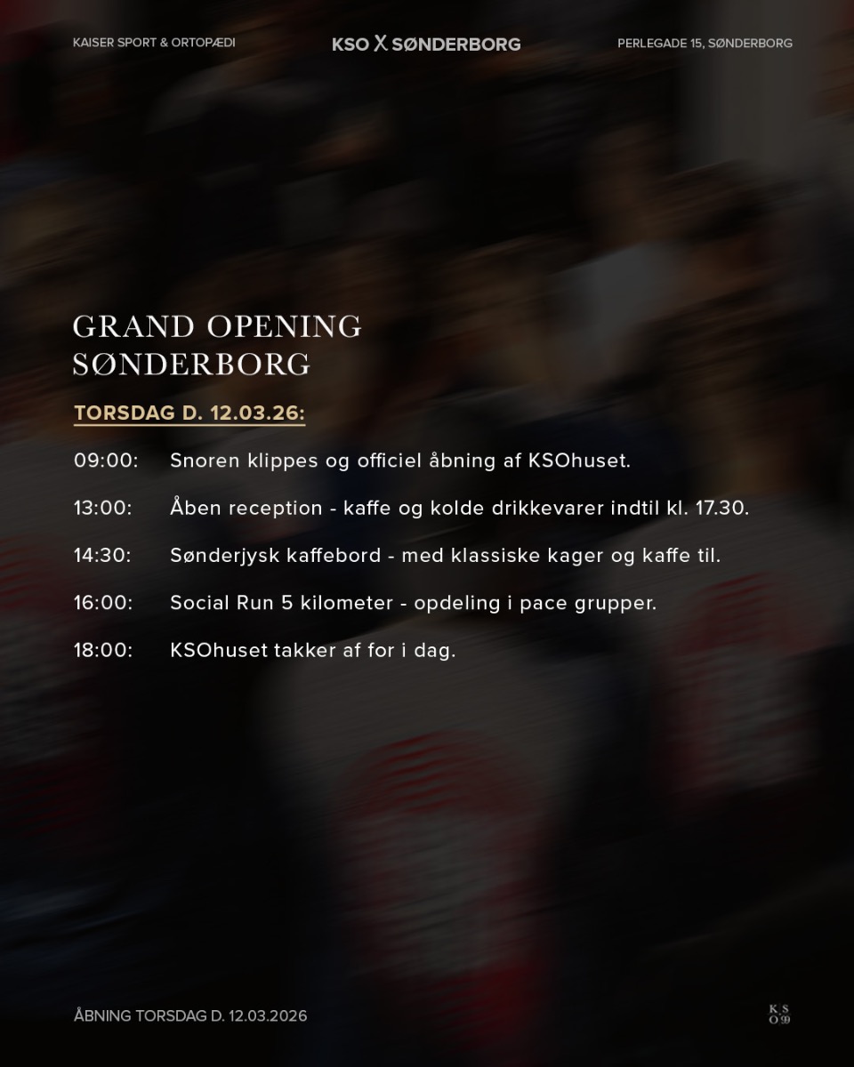 Når vi i Kaiser Sport & Ortopædi (KSO) torsdag d. 12. marts åbner vores nye løbebutik på Perlegade 15, markerer det samtidig det første af vores KSOhuse i Sønderjylland.